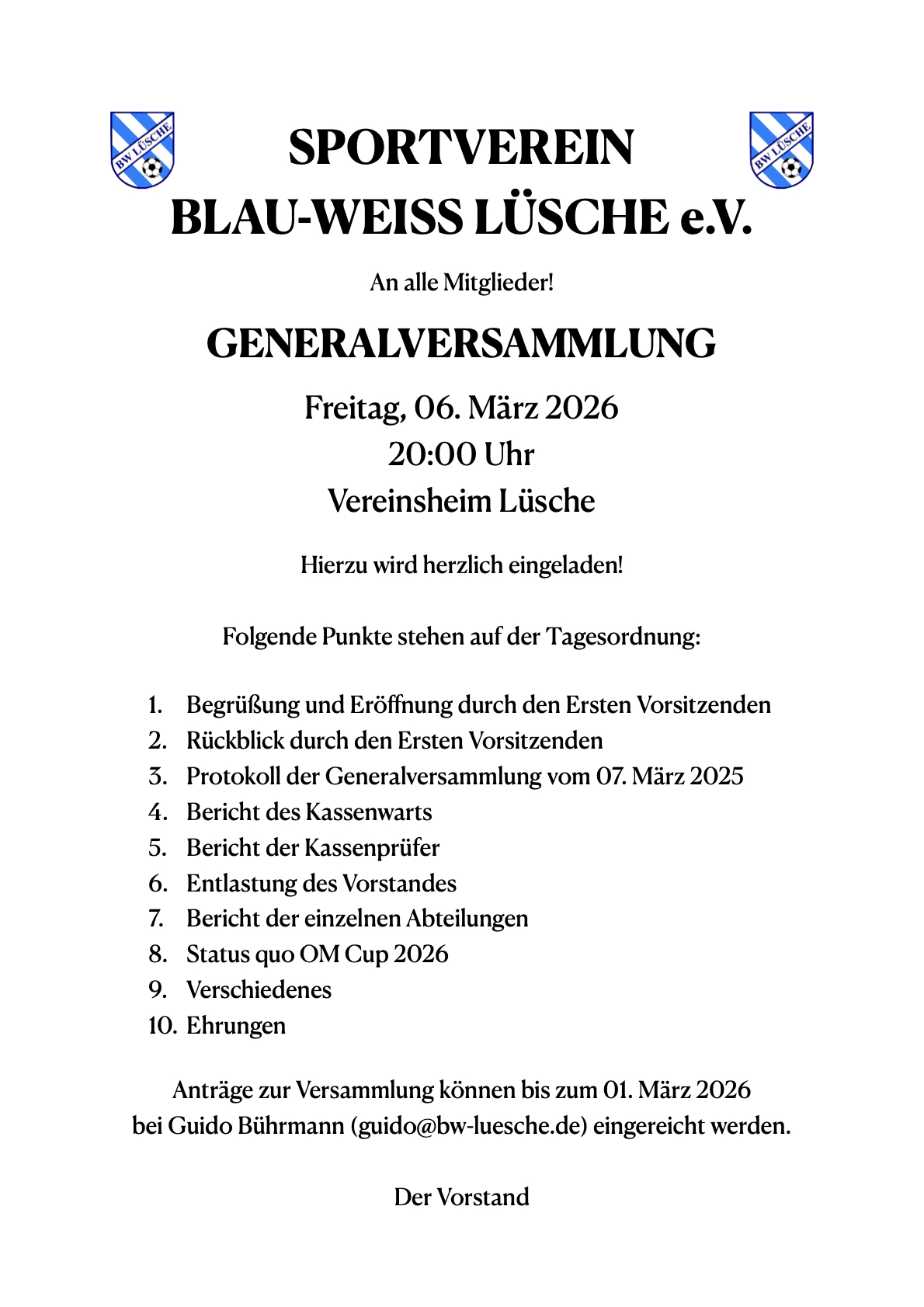 Einladung zur Generalversammlung