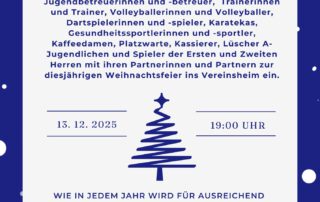 Einladung zur diesjährigen Weihnachtsfeier Wir laden alle Jugendbetreuerinnen und -betreuer, Trainerinnen und Trainer, Volleyballerinnen und Volleyballer, Dartspielerinnen und [...]