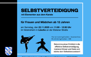 Selbstverteidigungskurs im September Unsere Karate-Trainerin Judith Küstermann bietet am Samstag, den 22. September 2025 von 11 bis 12:30 [...]