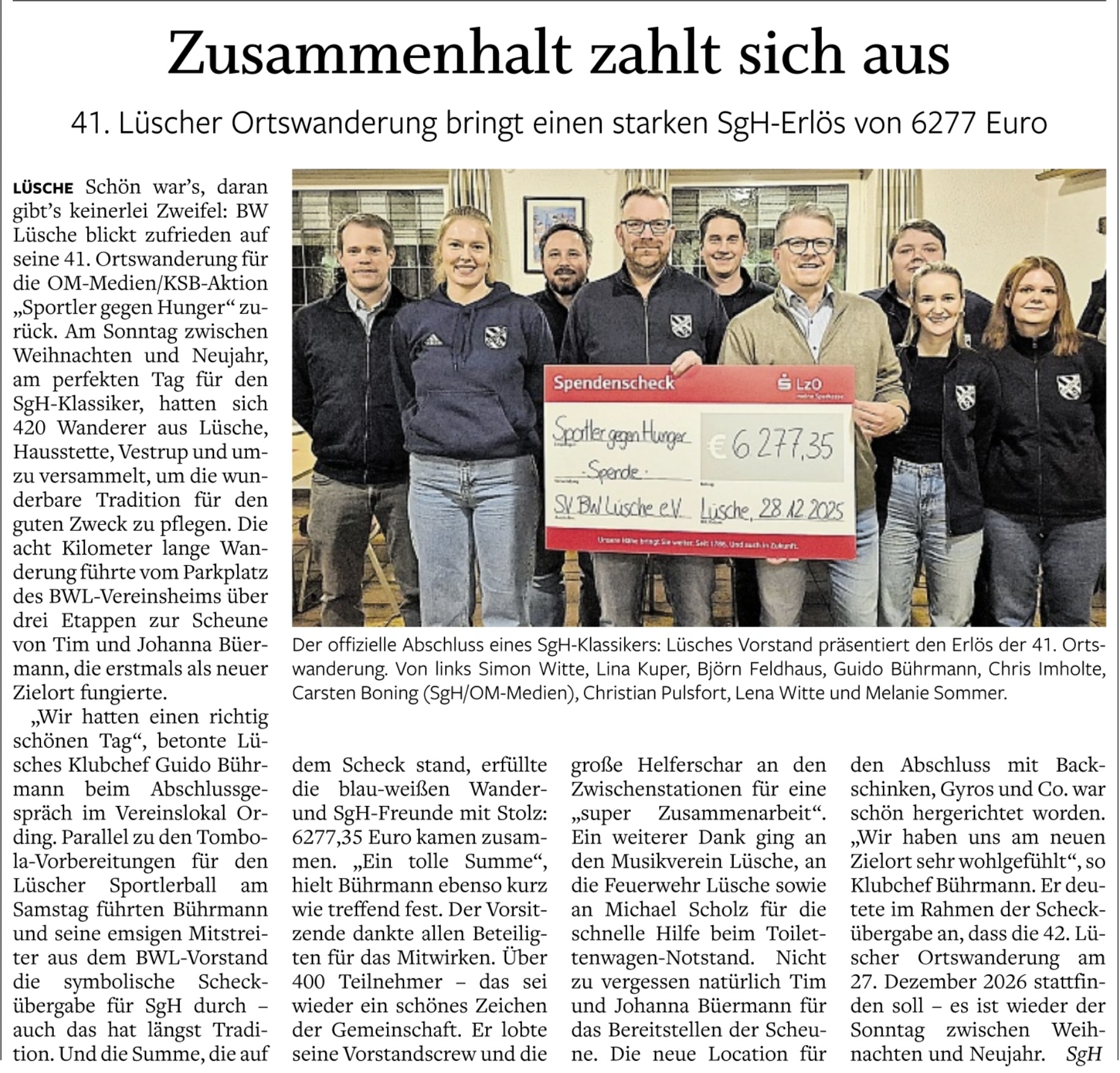 Spendensumme SgH Zwischen den Feiertagen fand am 28.12.2025 unsere 41. SgH-Wanderung statt. Trotz der Kälte sind an diesem Tag etwa 420 Wanderer aus Lüsche, Hausstette, Vestrup und umzu [...]
