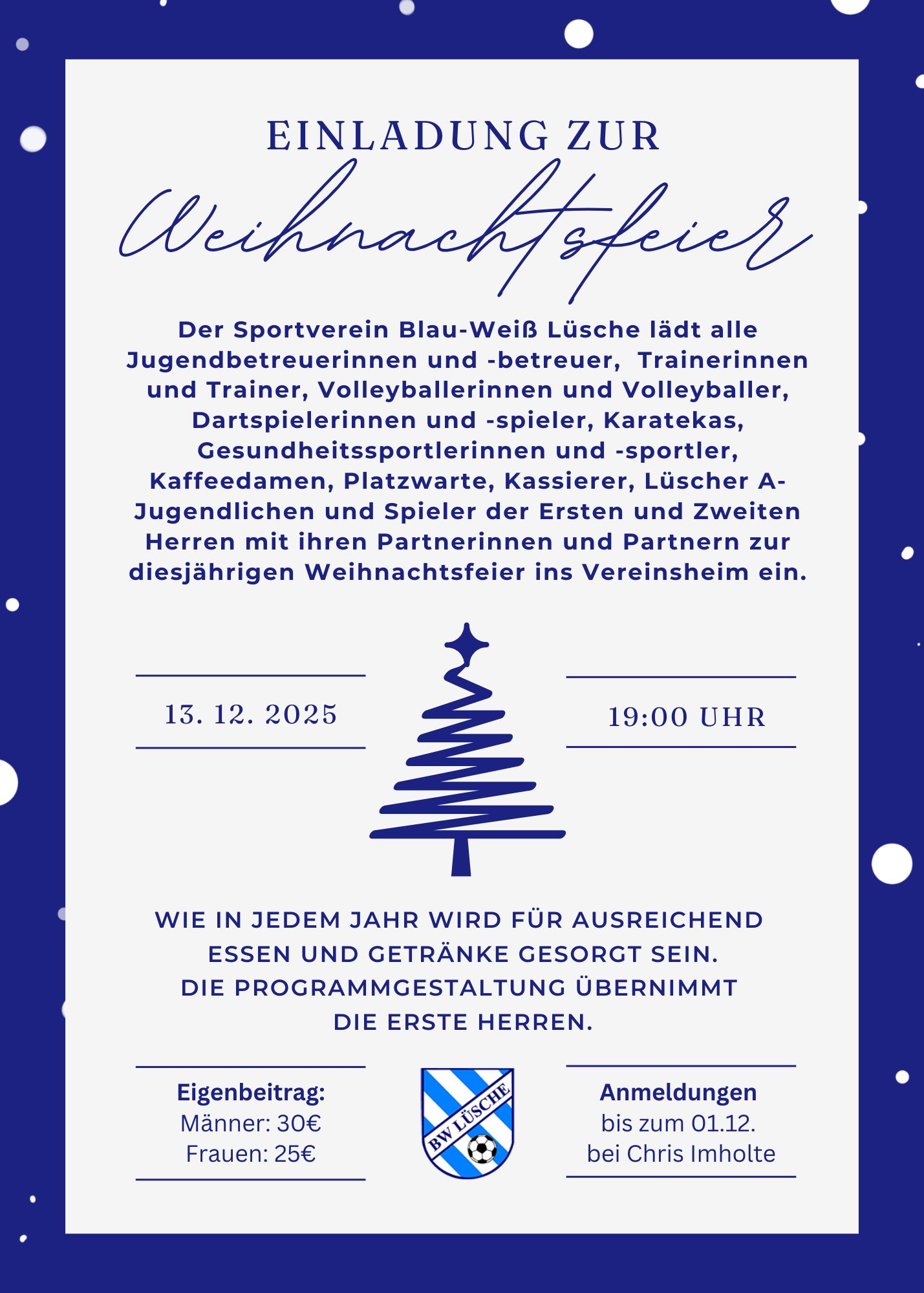 Vereinsheim BW Lüsche Elstener Straße 12, Lüsche, DeutschlandDer Vorstand lädt am Freitag, den 07. März 2025 zur Generalversammlung des Vereins ins neue Vereinsheim an der Elstener Straße ein. Alle Mitglieder sind hierzu herzlich eingeladen. [...]
